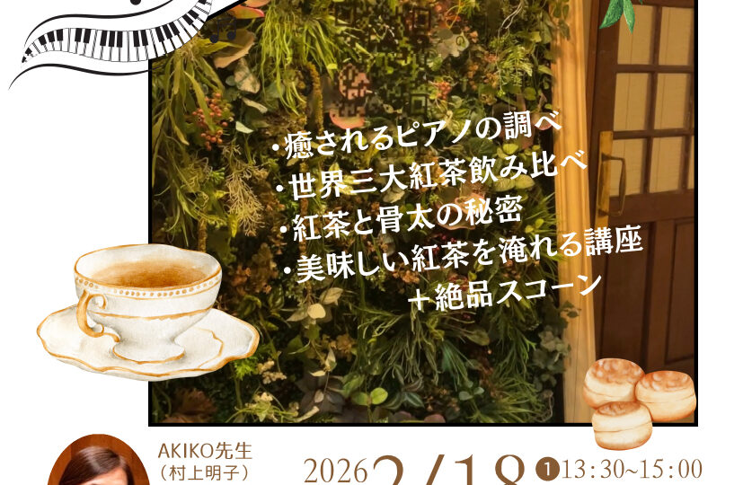 情報提供:ナチュラルピアノスタジオ村上明子 紅茶アドバイザー木村頼正